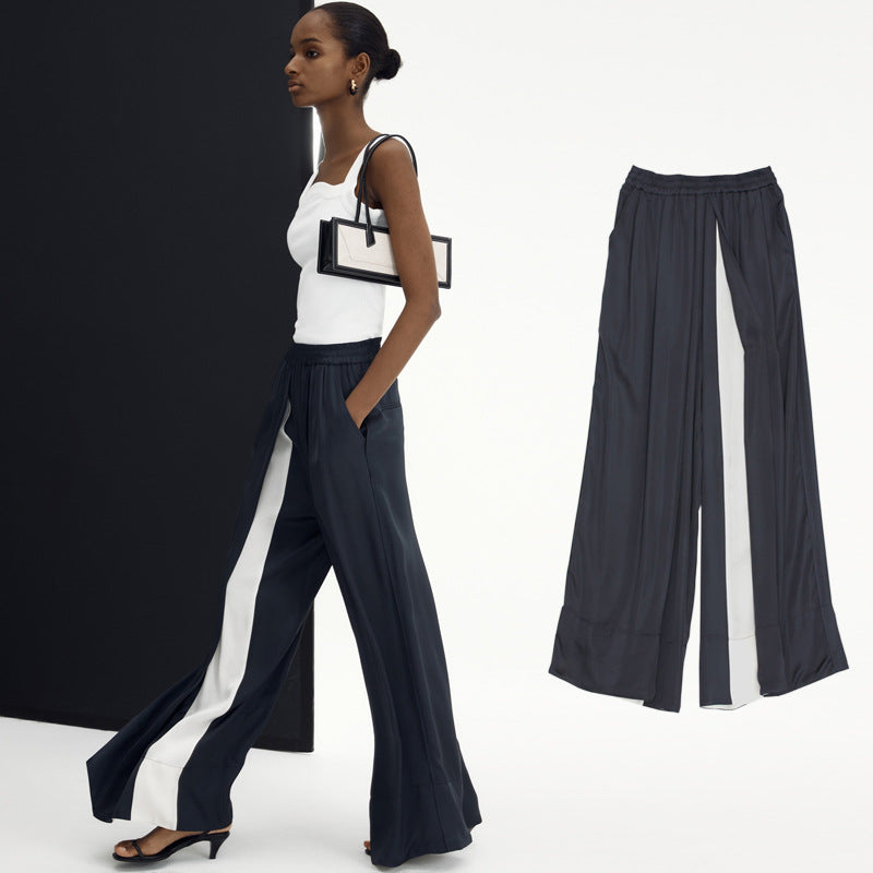 Loose Wide-leg Pants Women's Color Matching Silky Casual TrousersLoose Wide-leg Pants Women’s Color Matching Silky Casual Trousers