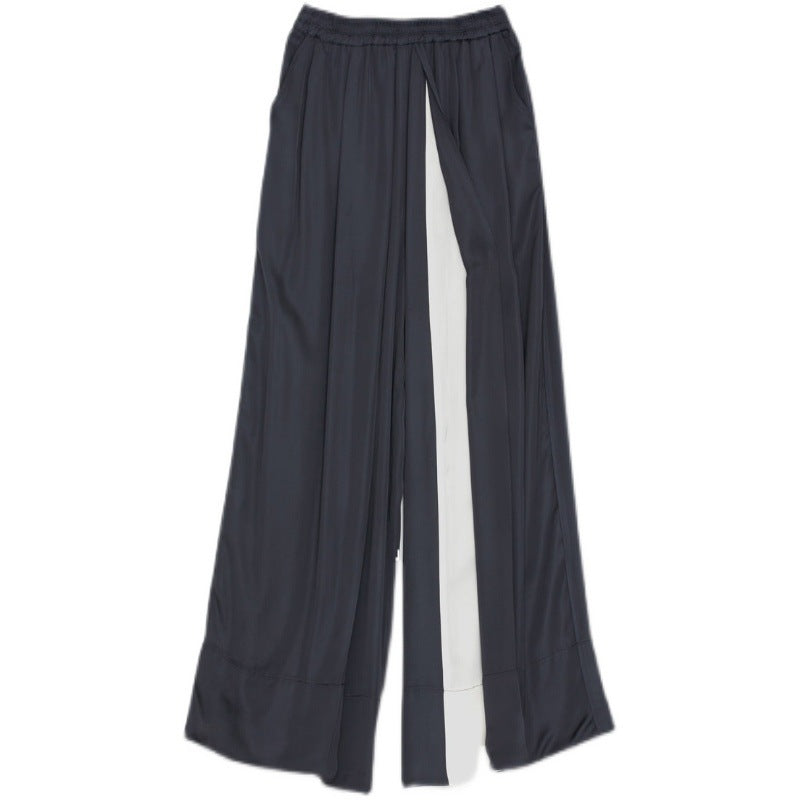 Loose Wide-leg Pants Women’s Color Matching Silky Casual Trousers